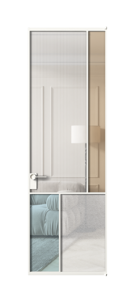 Лаконичный разделительный профиль внутренней раскладки полотна обеспечивает эстетический внешний вид конструкции и идеальную стыковку вставок из стекла.