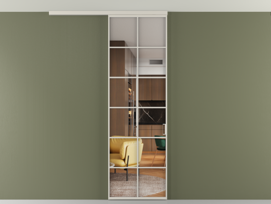 Во всех алюминиевых перегородках, независимо от типа установки, используется компланарный раздвижной механизм, благодаря которому декоративная крышка и полотно находятся в одной плоскости.